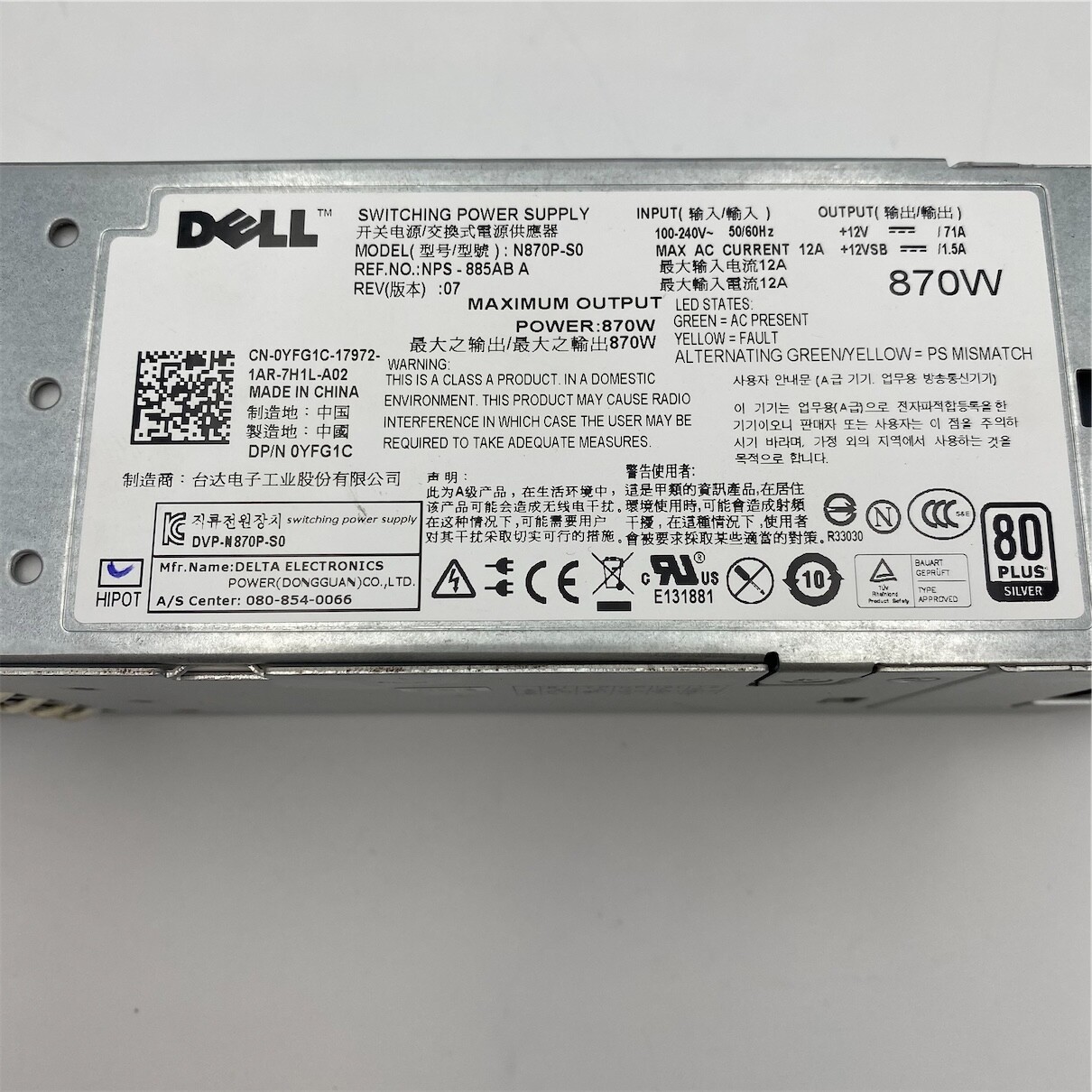 Sé el primero en valorar “DELL 870W POWER SUPPLY FOR POWEREDGE R710/T610 03257W 07NVX8 0D263K 0YFG1C”