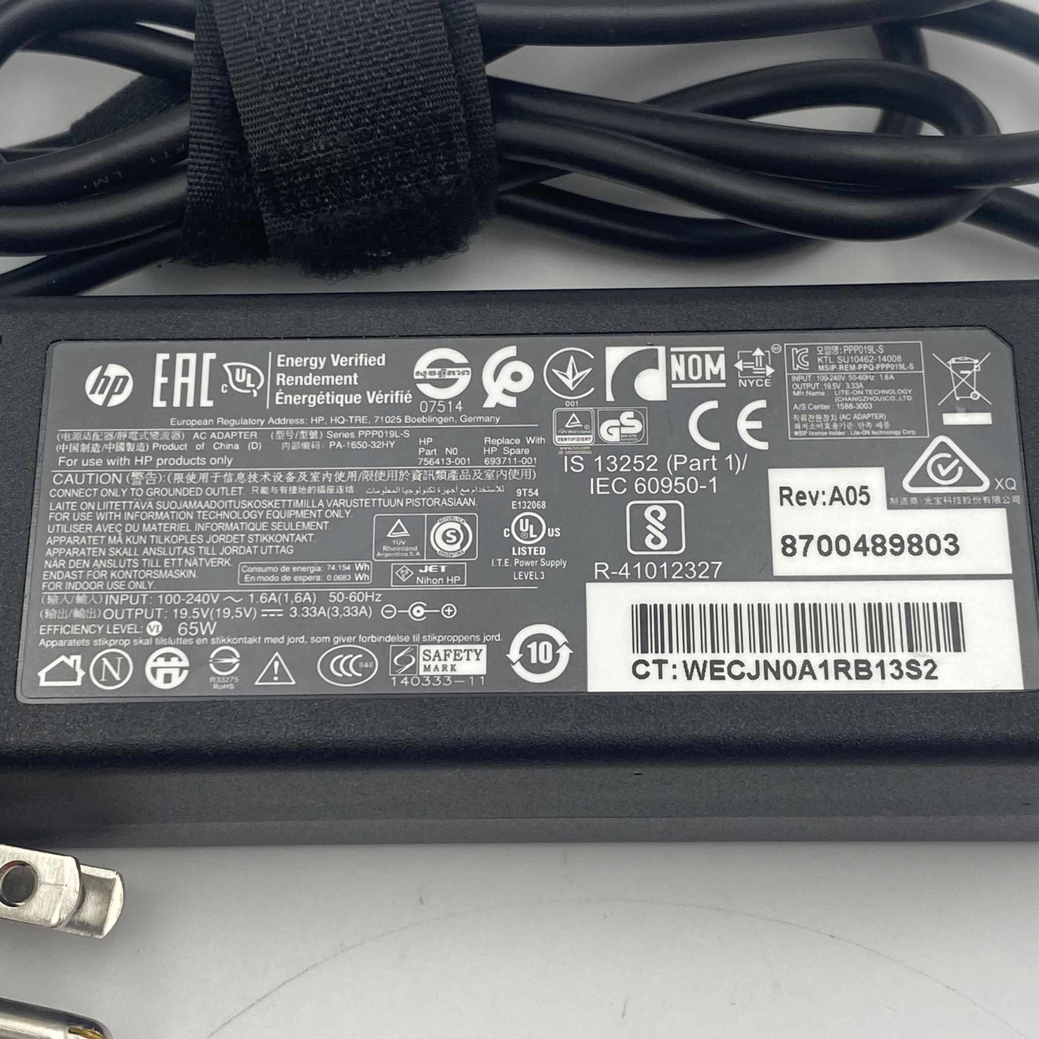 HP 65W AC ADPTR nPFC SMART 3P L40094-001 756413-001 693711-001
