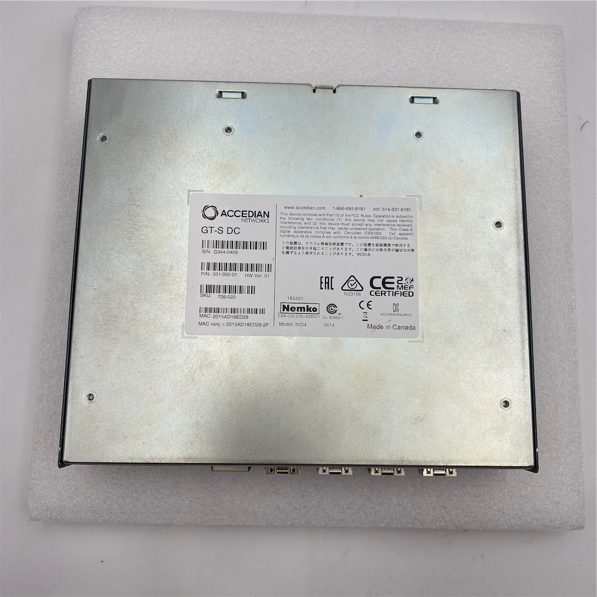 | shortDescription | Accedian MetroNID GT-S DC 4-Port Network Switch "manual & mount kit Included" "No PS" 501-050-01 |