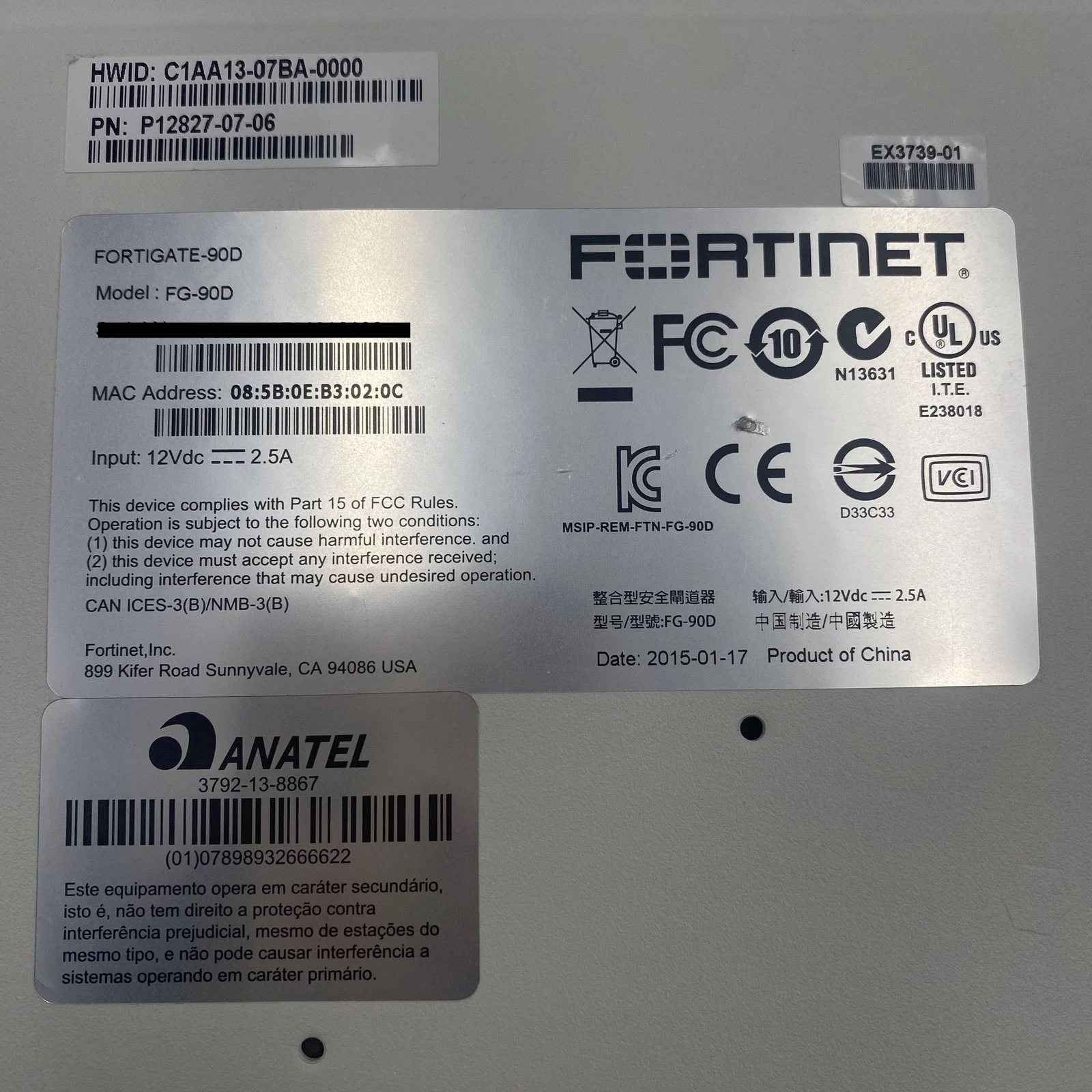 Fortinet Fortigate 90D FG-90D Network Router Firewall P12827-07-06