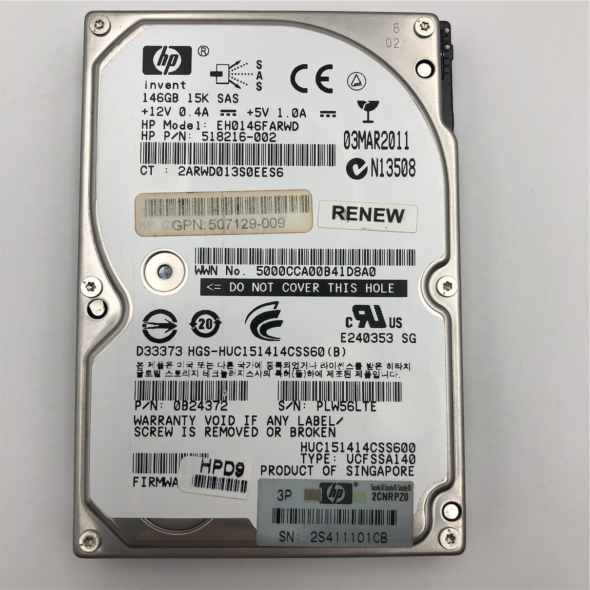 HP 146GB 6G 15K DP 2.5 H/S SAS HDD 512744-001 512547-B21 507129-009