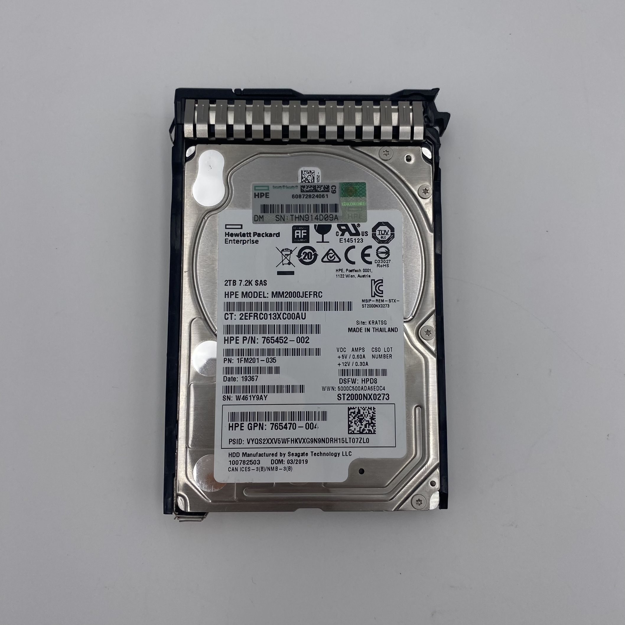 HP 2TB SAS 12G 7.2K SFF SC 512e DS HDD 765466-B21 765452-002 765873-001
