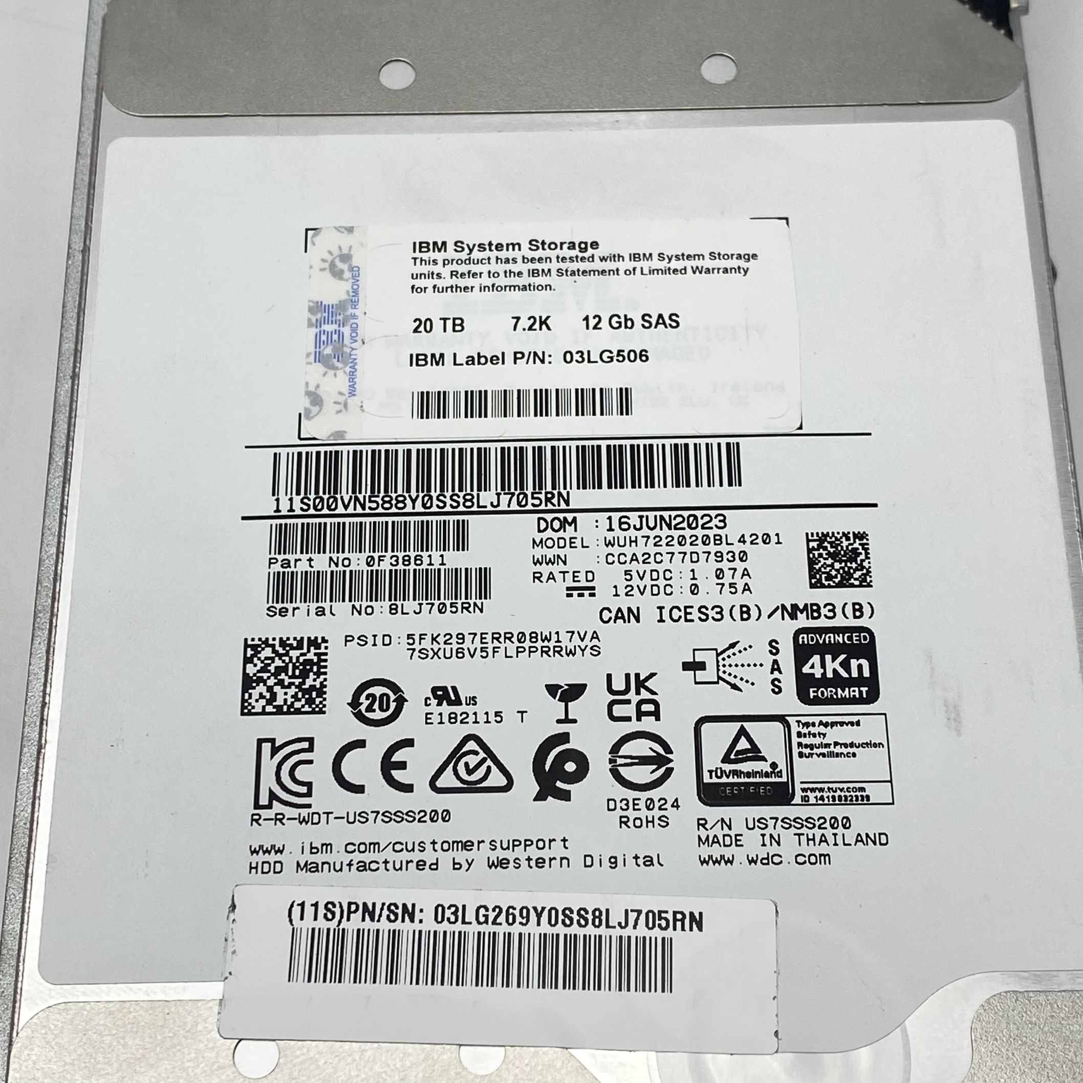 IBM 20TB 7.2Krpm 12 Gb SAS NL 3.5 HDD 03LG506 03LG269 03JN569 03LG267