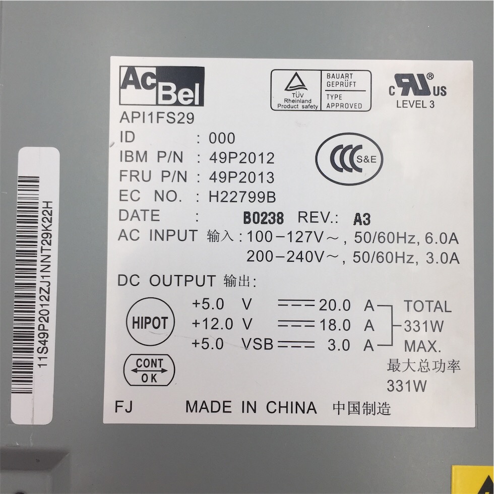 IBM xSeries x335 331W Power Supply 49P2012 API1FS29 49P2013